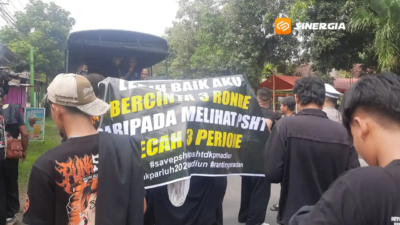 Sinergia | Magetan – Sekelompok massa dari Persaudaraan Setia Hati Terate (PSHT) dari berbagai daerah bergerak menuju Padepokan Agung PSHT di Jalan Merak Kota Madiun pada Kamis (5/2/2026). Kedatangan mereka diduga berkaitan dengan gejolak internal organisasi menjelang agenda Parapatan Luhur (Parluh) yang akan digelar oleh PSHT Pusat Madiun. Sebelumnya, aksi demonstrasi penolakan terhadap rencana tersebut juga sempat terjadi di Alun-Alun Kota Madiun beberapa waktu lalu.