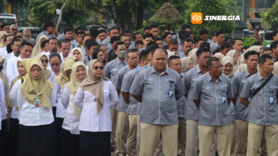 Sinergia | Madiun – Pemerintah Kabupaten Madiun menggelar apel bersama usai libur panjang Hari Raya Idul Fitri 1447 Hijriah di halaman Pendopo Ronggo Djumeno, Rabu (25/3/2026). Kegiatan ini diikuti ribuan aparatur sipil negara (ASN) dari seluruh organisasi perangkat daerah, kecamatan, hingga puskesmas.