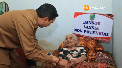 Sinergia | Kota Madiun – Pemerintah Kota Madiun melalui Dinas Sosial menyalurkan bantuan sosial (bansos) triwulan pertama bagi warga lanjut usia kategori lansia ngebrok dan penyandang disabilitas, Senin (16/3/2026). Bantuan tersebut diberikan secara serentak kepada ratusan penerima di Kota Madiun. Seperti penyerahan bagi disabilitas di Kelurahan Nambangan Kidul oleh Pelaksana Tugas (Plt) Wali Kota Madiun, F. Bagus Panuntun yang didampingi Kepala Dinsos,Heri Suwartono.