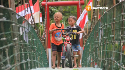 Tak hanya para warga, anak-anak sekolah juga terlihat tersenyum dan saling bercanda saat melangkah di atas papan jembatan. Bagi mereka, jembatan ini bukan sekadar infrastruktur, melainkan jalan menuju mimpi yang kini terasa lebih dekat.